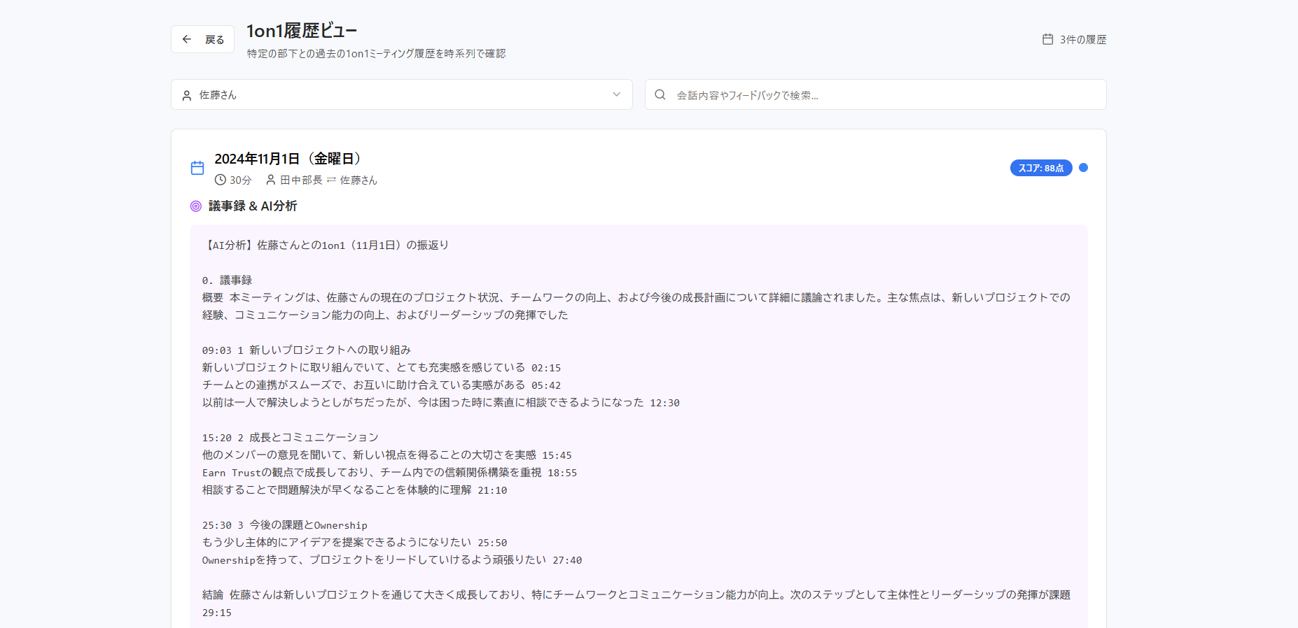 発話量・傾聴・提案頻度など、自分のスコアを確認する